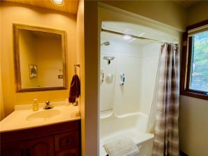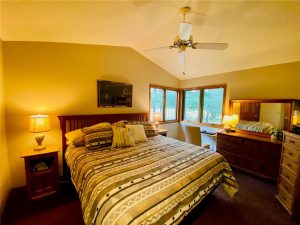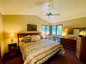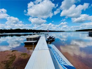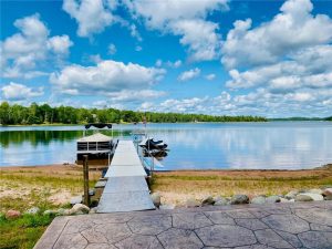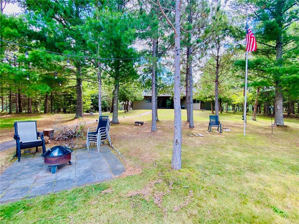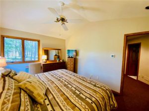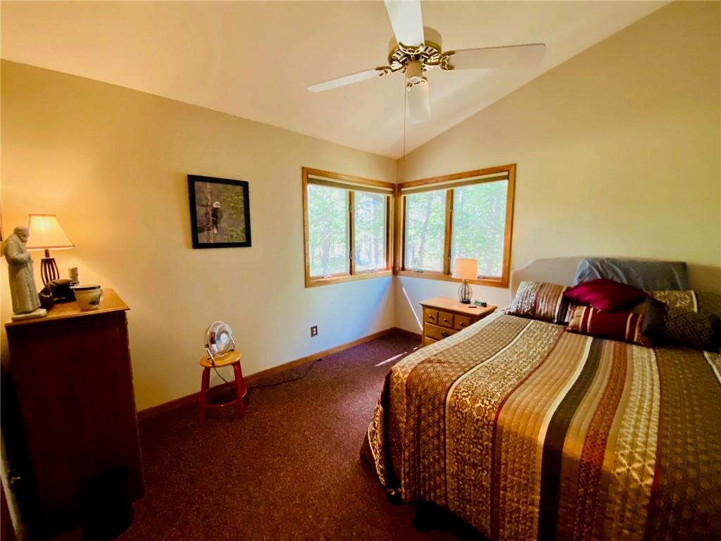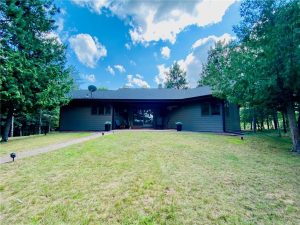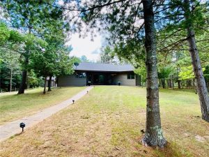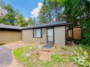 Rare opportunity to own a one-of-a-kind setting on Bond Lake with level elevation and zero steps from cabin to shore. Nestled on 2.8 private acres with 153 feet of sandy frontage, this property is perfect for swimming, games, and lakeside living. The one level home features 3 bedrooms, 2 baths, and an open-concept living area that captures lake views. A large garage offers ample storage, while a cozy bunkhouse provides extra space for guests. The yard is beautifully landscaped with a fire pit for gathering, and the asphalt driveway adds convenience. With its sandy beach, usable level yard, and peaceful wooded backdrop, this property blends comfort with true Northwoods charm. Rarely does a setting like this become available on this sought-after waterway. An ideal place to relax, entertain, and enjoy lake life.