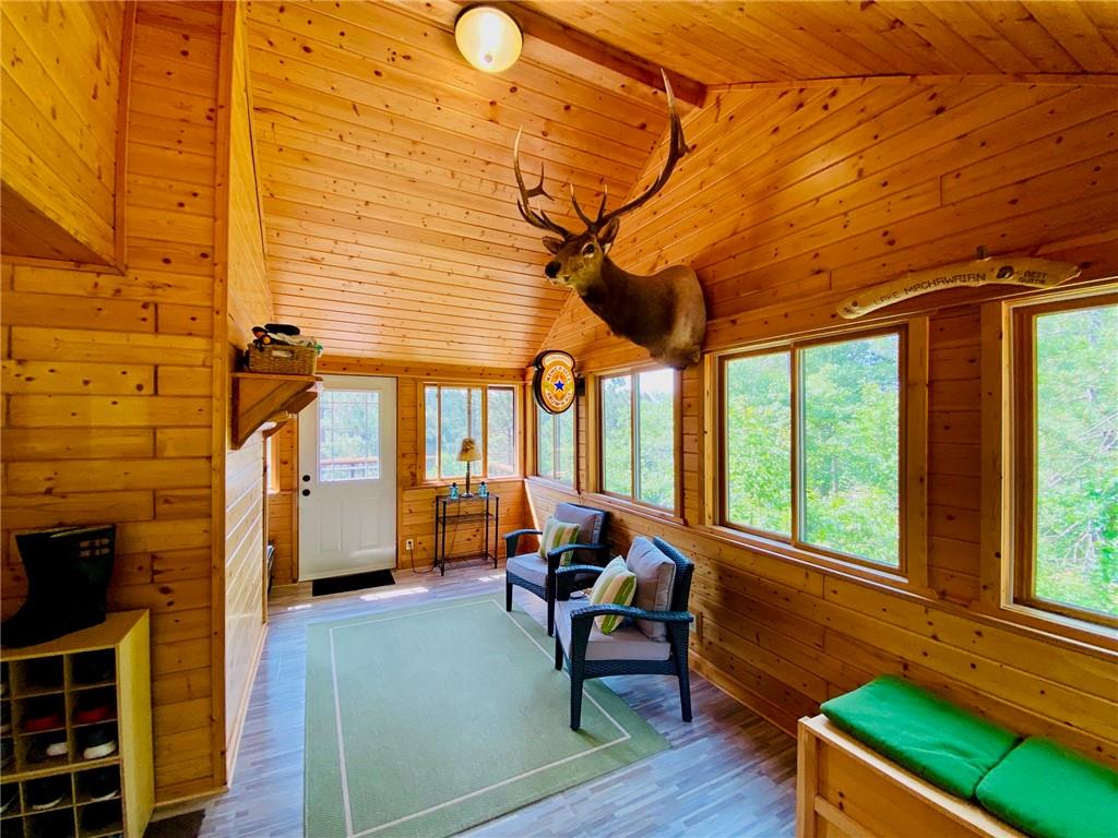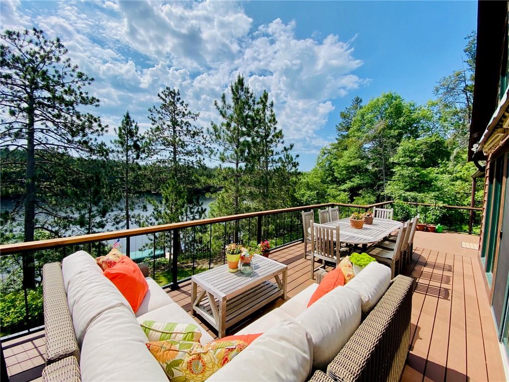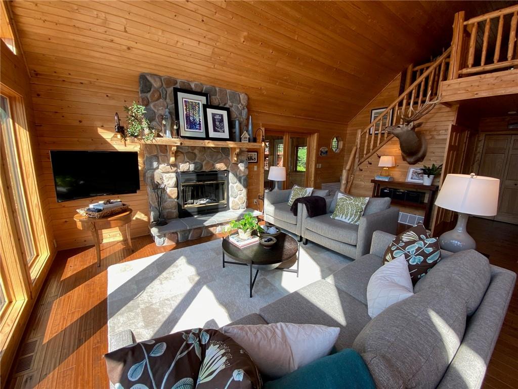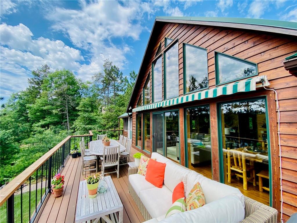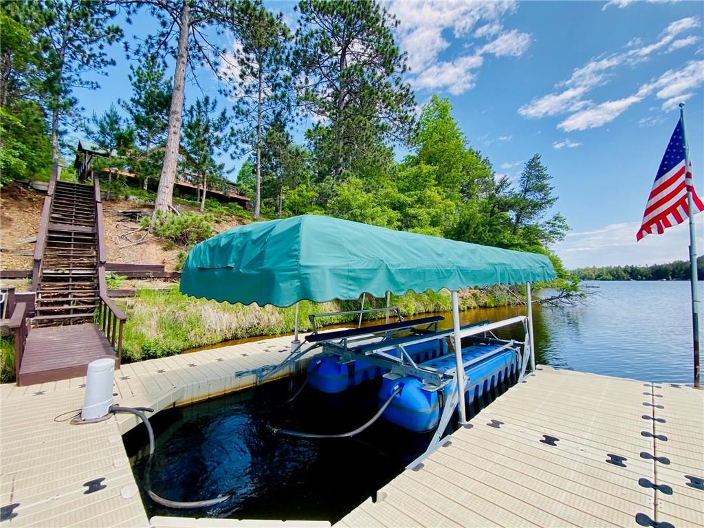 High-end, custom-built chalet-style home on the popular Minong Flowage! This 5BR/3BA retreat offers quality craftsmanship throughout with hand-scraped maple floors, cedar siding, and a stunning wall of lakeside windows that flood the interior with natural light. Major remodeling and addition completed in 2017. The spacious layout includes multiple living areas, ample storage, a large primary en suite with walk-in closet, and a fully finished walk-out basement perfect for guests or entertaining. Professional-grade appliances, a full backup generator system, and meticulous maintenance make this home truly turn-key. A detached 2-car garage with loft for storage or potential guest quarters. The nicely landscaped, level yard offers great privacy, while a floating dock and deep-water boat lift provide premium lake access. Located on a prime spot on this sought-after lake with boat-up restaurants and bars nearby. Near recreation trails for ATVing, snowmobiling, hiking, and four-season fun!